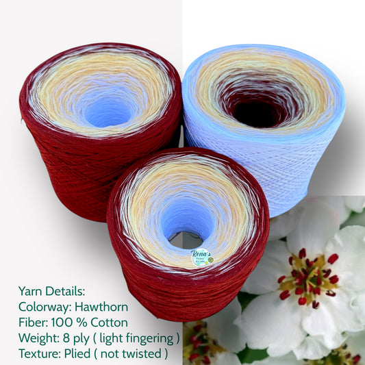 Hawthorn, May Birth Flower, Gradient Cotton Natural Fiber Yarn