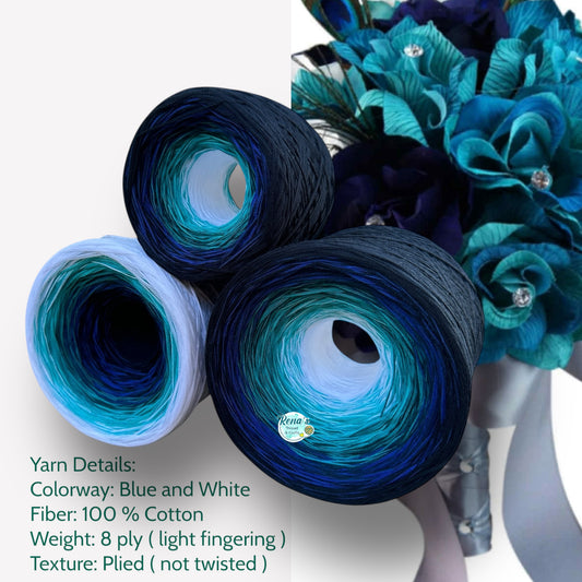 Tied With Love : Blue and White , Gradient Cotton Natural Fiber Yarn