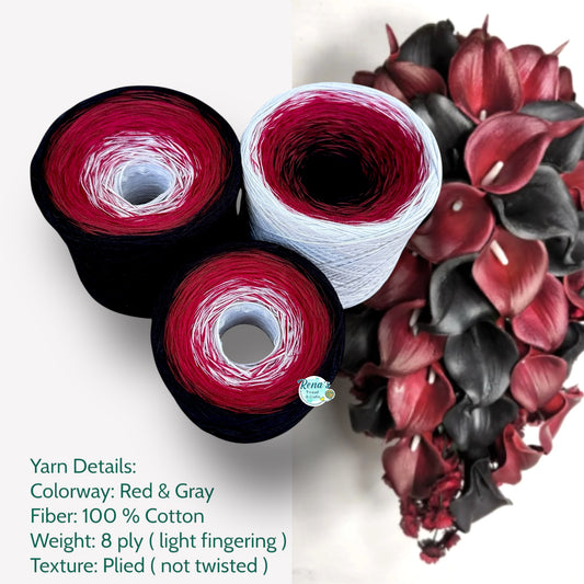 Tied With Love : Red & Gray, Gradient Cotton Natural Fiber Yarn
